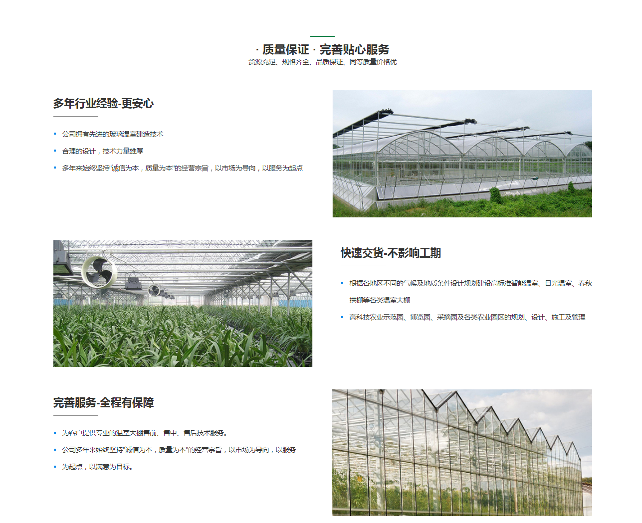 無錫永睿鴻溫室工程有限公司自創辦以來,已在多個城市地區承建了許多的農業示范園區、花卉苗木種植園、家禽水產養殖區、生態餐廳和旅游觀光園等。并以“質量過硬、價格合理、服務周到”贏得了廣大用戶的信賴?! 」局鳡I產品:玻璃溫室、溫室工程、連棟大棚、蔬菜大棚、溫室大棚、花卉大棚、養殖大棚、大棚鋼管、外遮陽大棚、外遮陽連棟大棚等。 公司產品廣泛用于農業生產、水產養殖、食用菌培養、花卉生產、林業種苗、畜牧等行業,并配有各種規格可供選擇,還可根據客戶要求提供特制結構?! ∥夜緭碛胸S富的施工經驗和完善的售后服務,秉承著團隊精神的和始終堅持誠信做人、認真做事、科學管理,不斷開拓創新,超越自我,提升綜合素質的理念,同時公司擁有技術精湛,經驗豐富的技術團隊,將竭誠為各界朋友提供農業設施的設計及相關服務?! 」疽回瀳猿帧捌焚|保證、用戶至上,誠信服務”的宗旨,憑借著高質量的產品,良好的信譽,完善的服務,產品暢銷近三十多個省、市、自治區。歡迎來電咨詢! Since its establishment, Wuxi yongruihong Greenhouse Engineering Co., Ltd. has undertaken to build many agricultural demonstration...